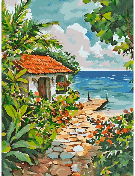 Картина по номерам без подрамника «Домик у моря» 70x50 см