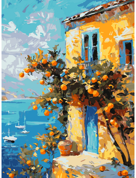 Картина по номерам без подрамника «Домик у моря» 130x100 см