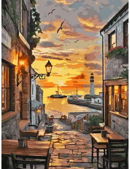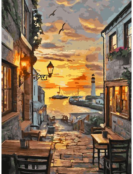 Картина по номерам без подрамника «Кафе у моря» 90x70 см