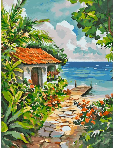 Картина по номерам без подрамника «Домик у моря» 90x70 см