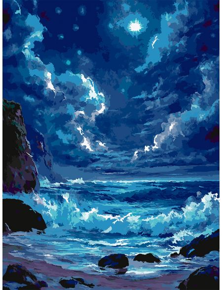 Картина по номерам без подрамника «Ночное море» 130x100 см