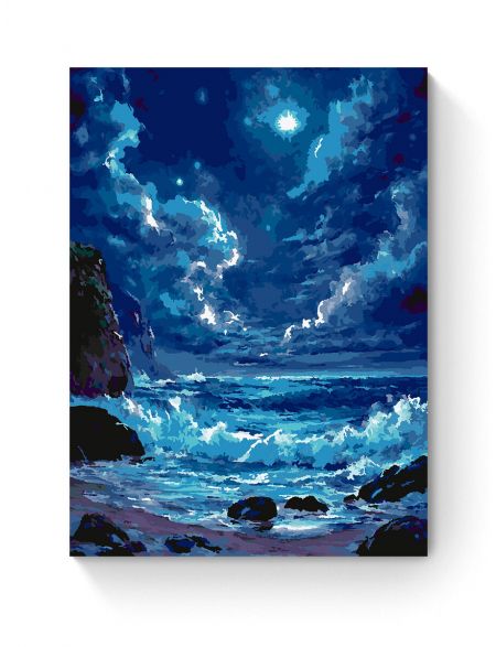 Картина по номерам на подрамнике «Ночное море» 90x70 см