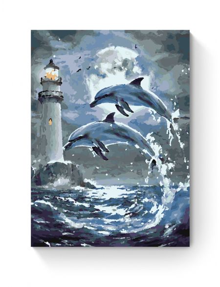 Картина по номерам на подрамнике «Дельфины» 50x40 см