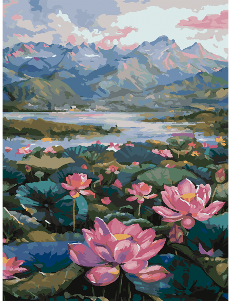 Картина по номерам без подрамника «Озеро лотосов» 35x25 см