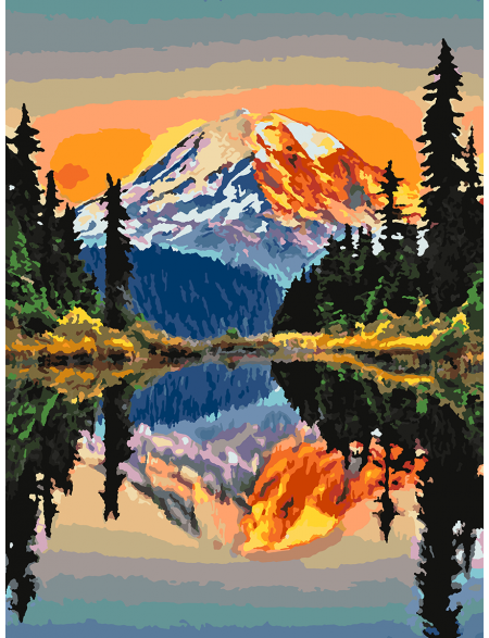 Картина по номерам без подрамника «Отражение гор» 70x50 см