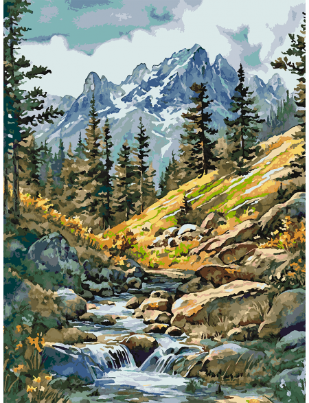 Картина по номерам без подрамника «Горный ручей» 130x100 см