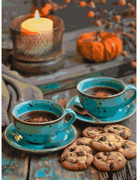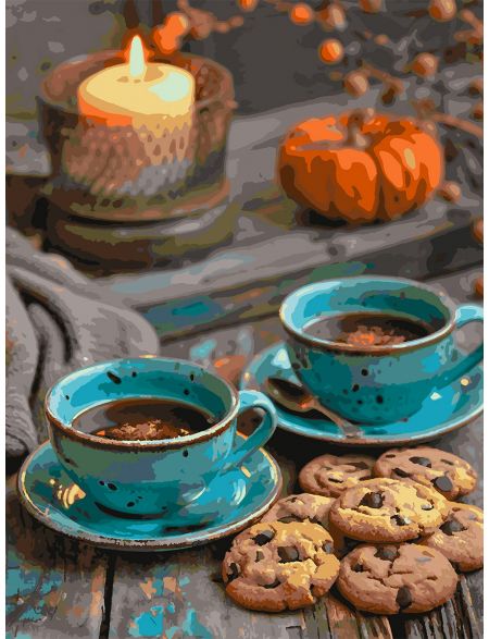Картина по номерам без подрамника «Кофе на двоих» 90x70 см