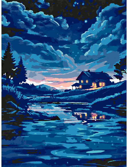 Картина по номерам без подрамника «Домик в ночи» 70x50 см