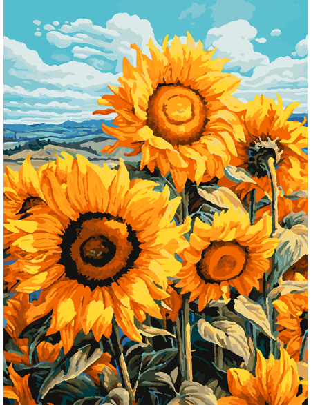Картина по номерам без подрамника «Подсолнухи» 90x70 см