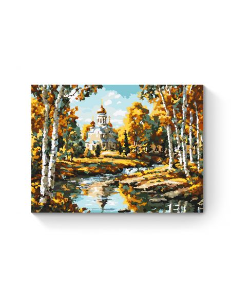 Картина по номерам на подрамнике «Храм у реки» 70x50 см