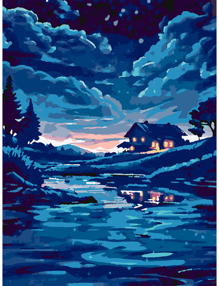 Картина по номерам без подрамника «Домик в ночи» 35x25 см
