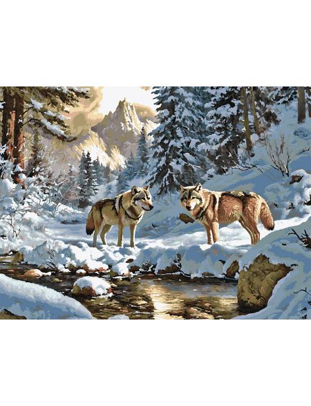 Картина по номерам на подрамнике «Волки в лесу» 80x60 см