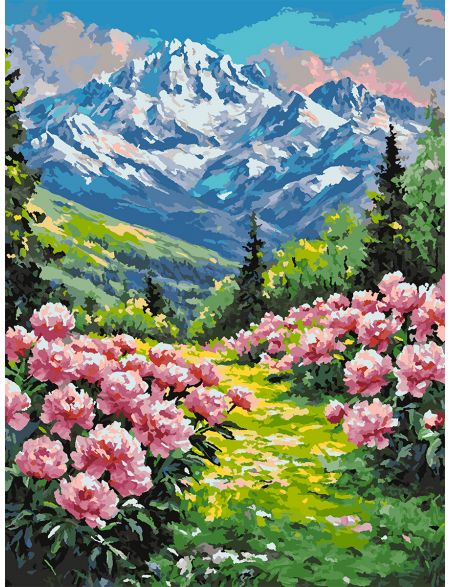 Картина по номерам без подрамника «Пионы в горах» 90x70 см