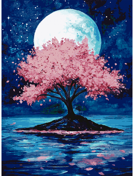 Картина по номерам без подрамника «Ночная сакура» 40x30 см