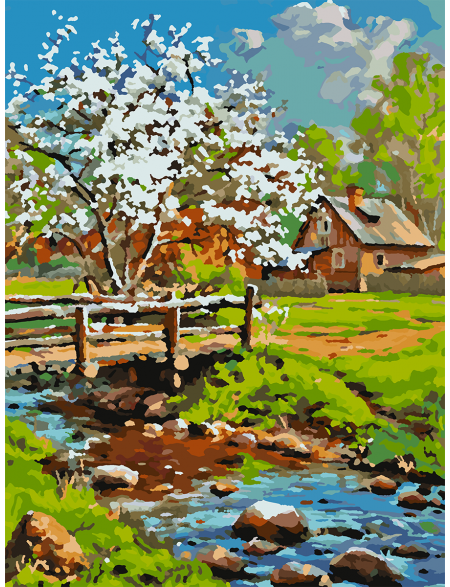 Картина по номерам на подрамнике «Весеннее село» 35x25 см