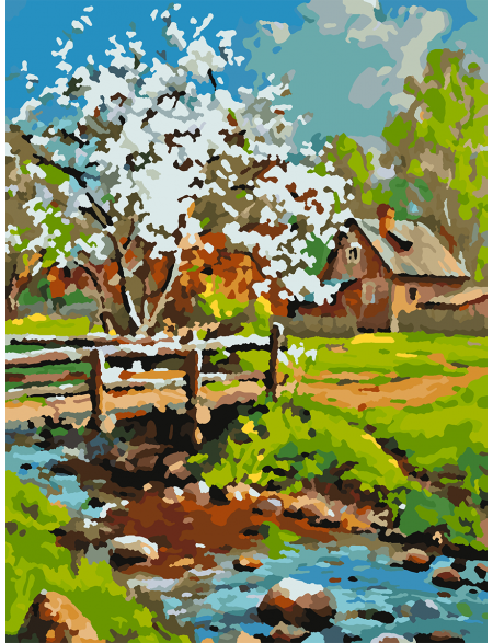 Картина по номерам без подрамника «Весеннее село» 35x25 см