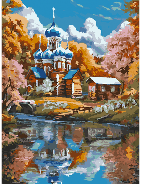 Картина по номерам без подрамника «Храм у реки» 35x25 см