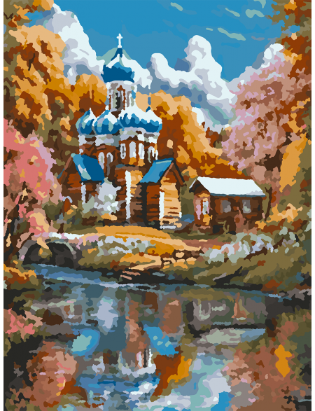 Картина по номерам без подрамника «Храм у реки» 25x20 см