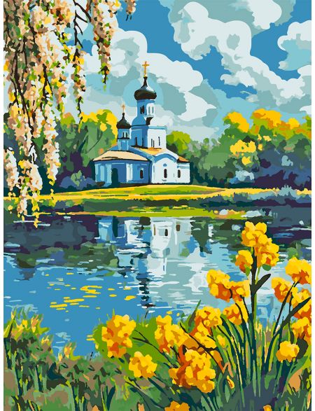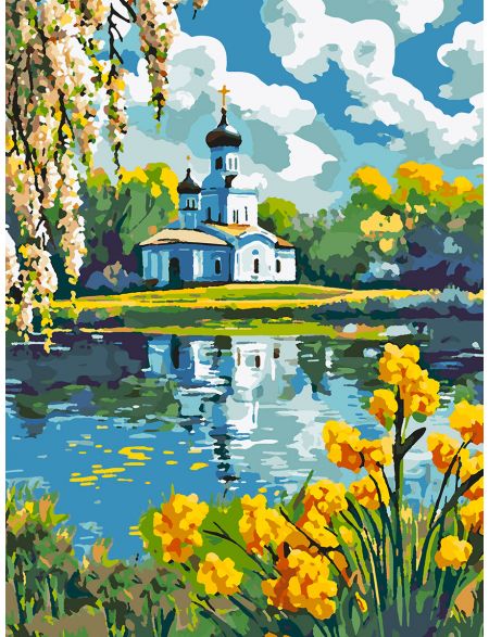 Картина по номерам без подрамника «Храм у воды» 70x50 см