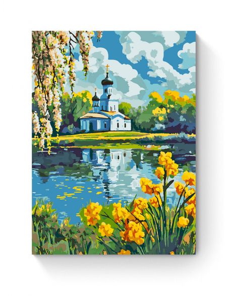 Картина по номерам на подрамнике «Храм у воды» 70x50 см