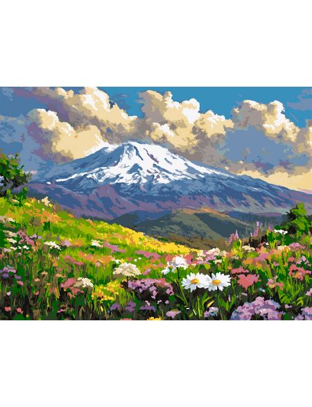 Картина по номерам на подрамнике «Цветы в горах» 90x70 см