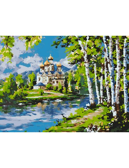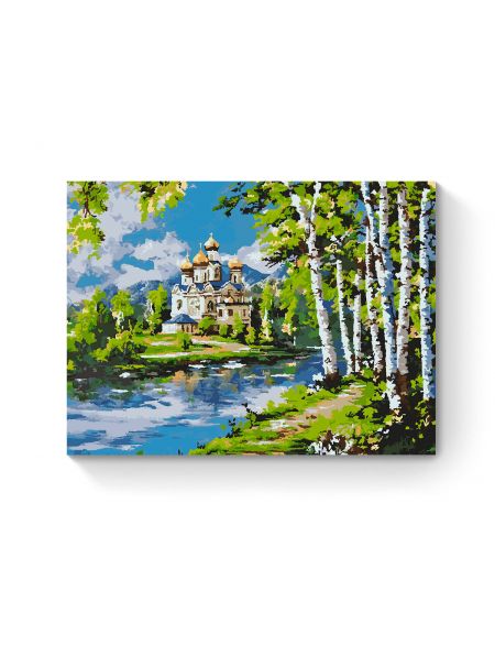 Картина по номерам на подрамнике «Храм у реки» 90x70 см
