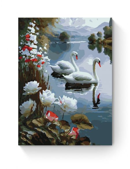Картина по номерам на подрамнике «Пара лебедей» 35x25 см