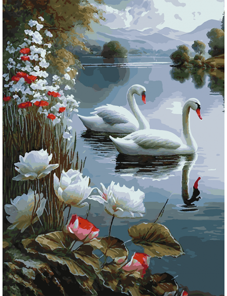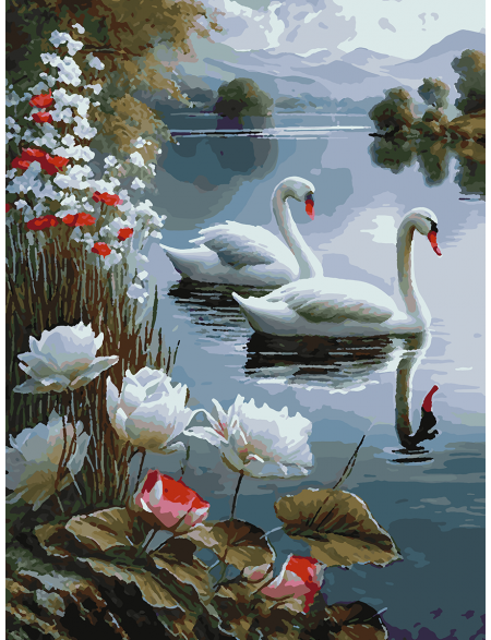 Картина по номерам без подрамника «Лебеди» 80x60 см