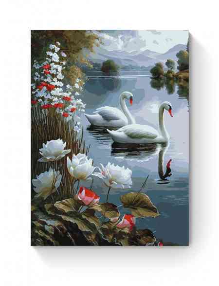 Картина по номерам на подрамнике «Белые лебеди» 35x25 см