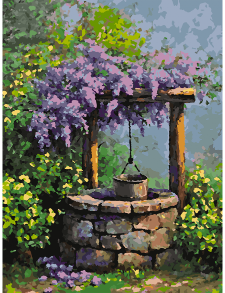 Картина по номерам без подрамника «Колодец в саду» 50x40 см