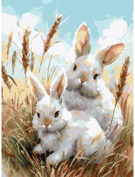 Картина по номерам без подрамника «Белые кролики» 50x40 см
