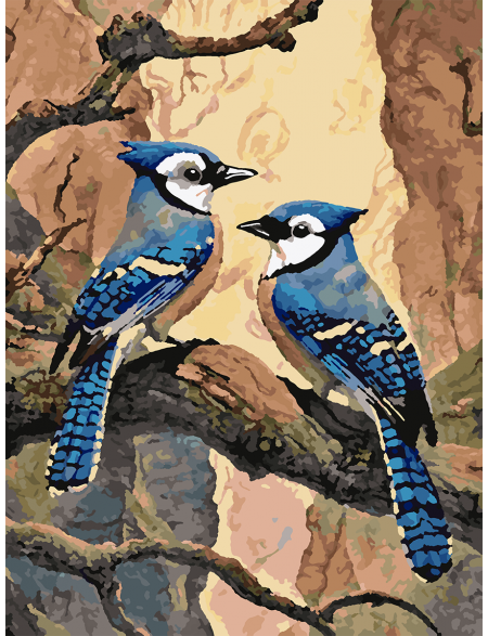 Картина по номерам без подрамника «Голубые сойки» 35x25 см