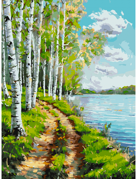 Картина по номерам без подрамника «Березы у воды» 70x50 см