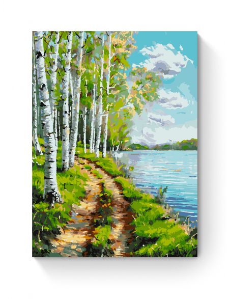 Картина по номерам на подрамнике «Березы у воды» 70x50 см