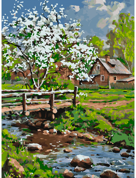 Картина по номерам без подрамника «Весеннее село» 70x50 см