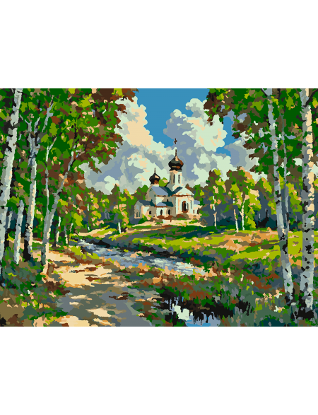 Картина по номерам без подрамника «Храм у реки» 70x50 см