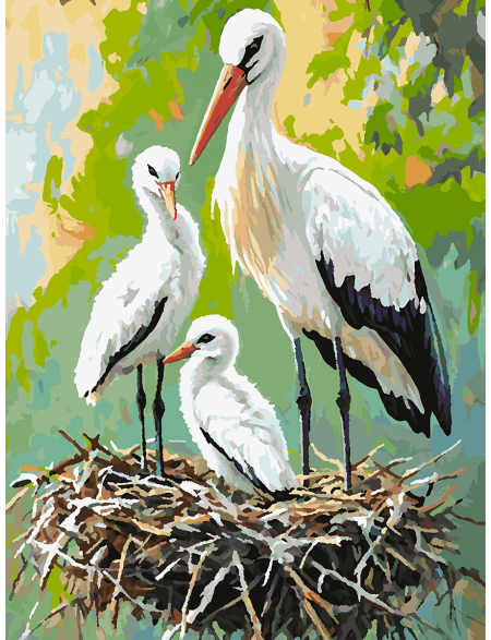 Картина по номерам без подрамника «Аисты» 70x50 см