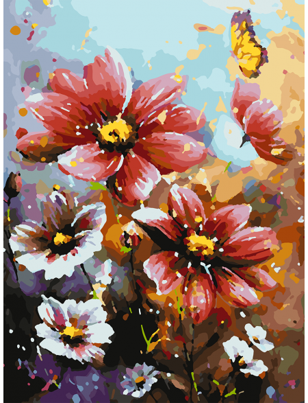 Картина по номерам без подрамника «Красные цветы» 40x30 см