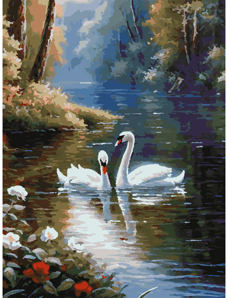 Картина по номерам без подрамника «Белые лебеди» 35x25 см