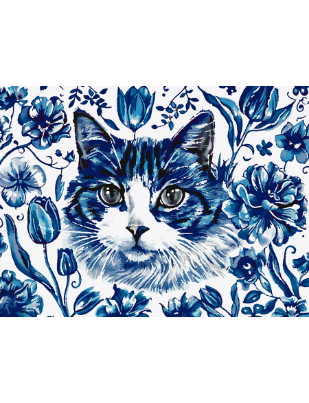 Картина по номерам без подрамника «Кошка Гжель» 70x50 см