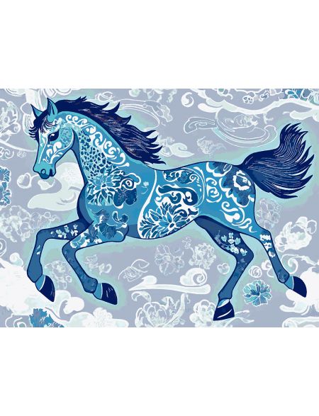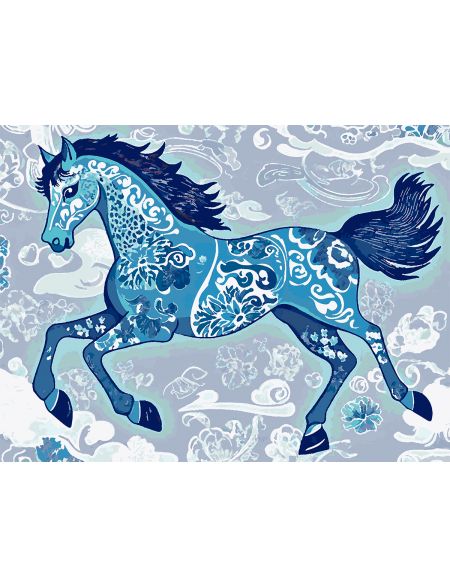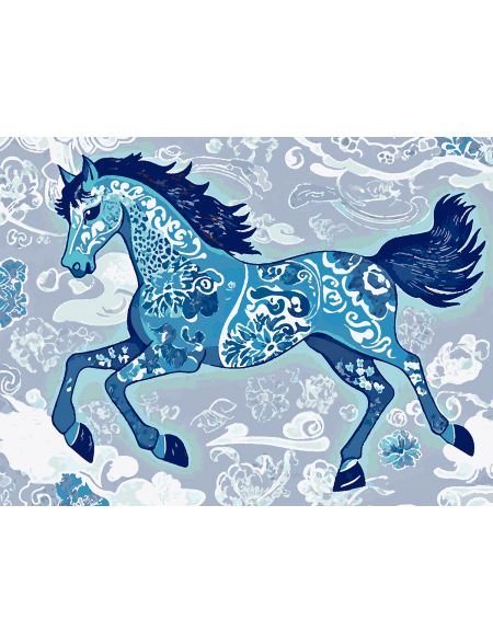 Картина по номерам без подрамника «Лошадка гжель» 130x100 см