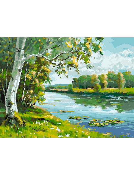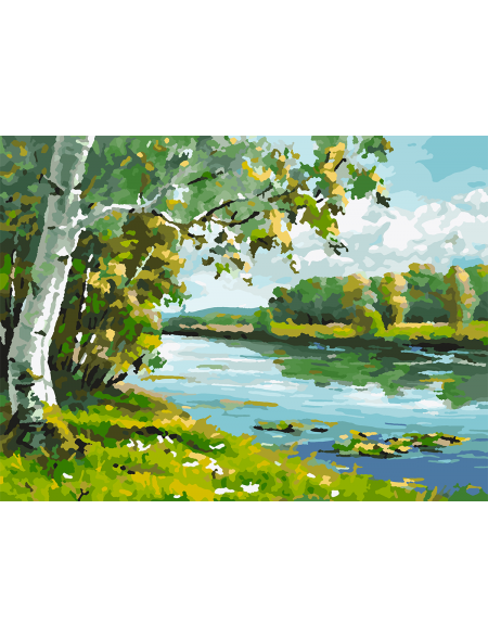 Картина по номерам без подрамника «Береза у реки» 35x25 см