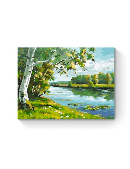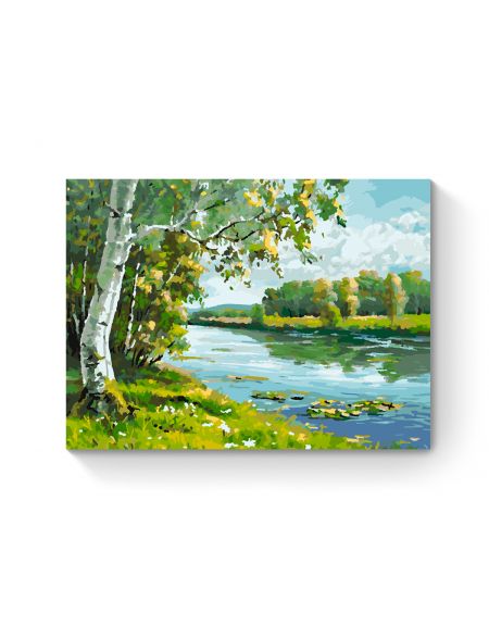 Картина по номерам на подрамнике «Береза у реки» 35x25 см