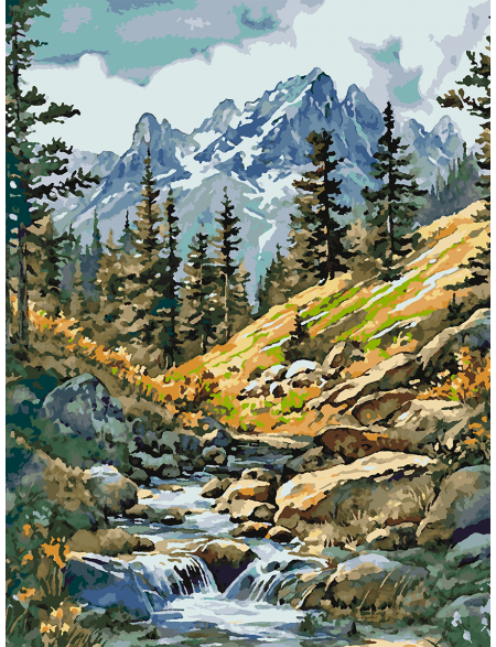 Картина по номерам без подрамника «Горный ручей» 90x70 см