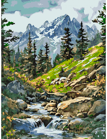 Картина по номерам без подрамника «Горный ручей» 70x50 см