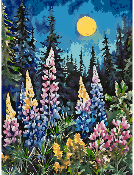 Картина по номерам без подрамника «Люпины в лесу» 70x50 см