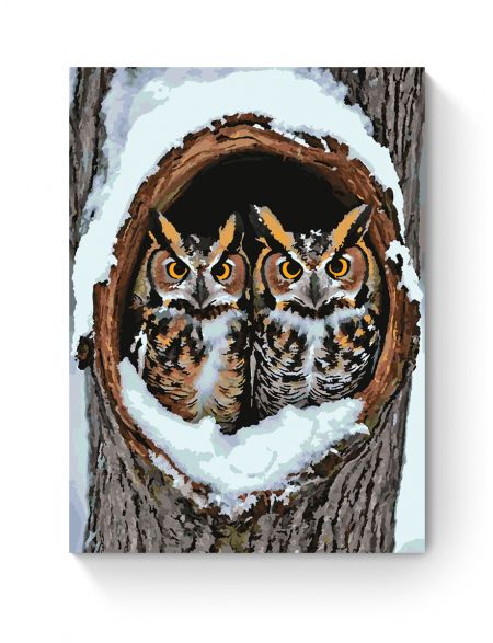 Картина по номерам без подрамника «Совы в дупле» 25x20 см