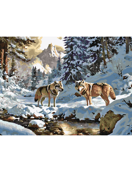 Картина по номерам без подрамника «Волки в лесу» 70x50 см