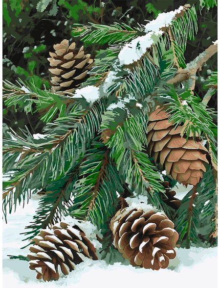 Картина по номерам без подрамника «Еловая ветвь» 90x70 см
