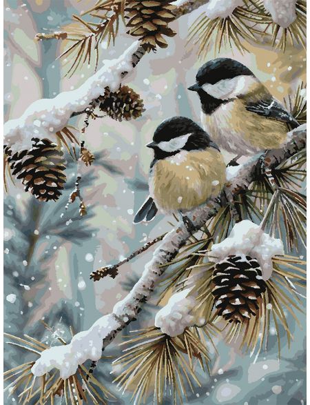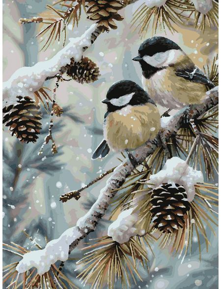 Картина по номерам без подрамника «Синички зимой» 80x60 см